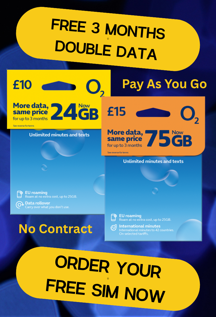 Free delivery on ALL sim cards, including our totally free UK Pay As You Go sims, and all other orders over £20 value.